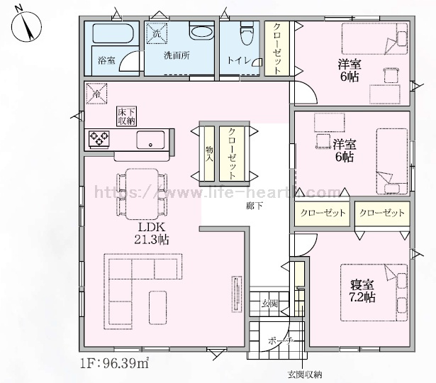 土地面積 | 300.78m2 〜 307.93m2 | 建物面積 | 78.57m2 〜 96.39m2 |