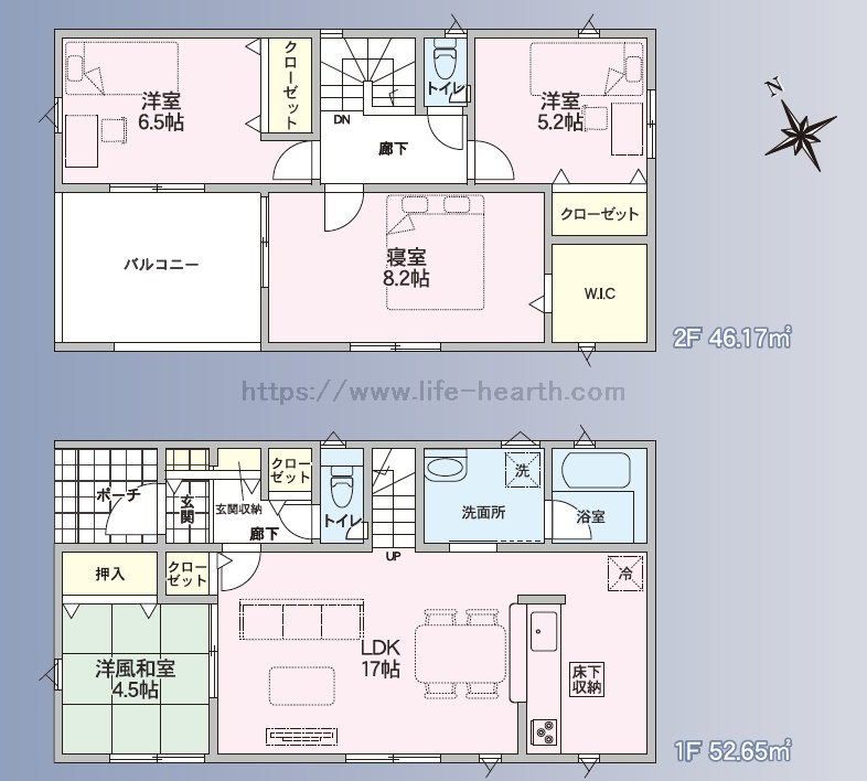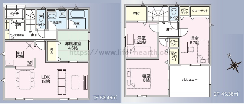 | 土地面積 | 195.36m2 〜 203.48m2 | 建物面積 | 98.82m2 |