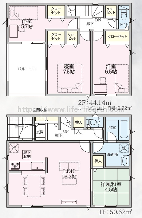 | 土地面積 | 163.03m2 | 建物面積 | 94.76m2 〜 98.82m2 |