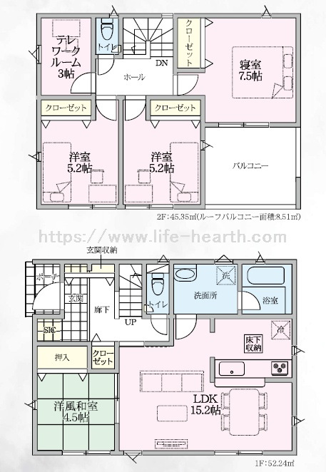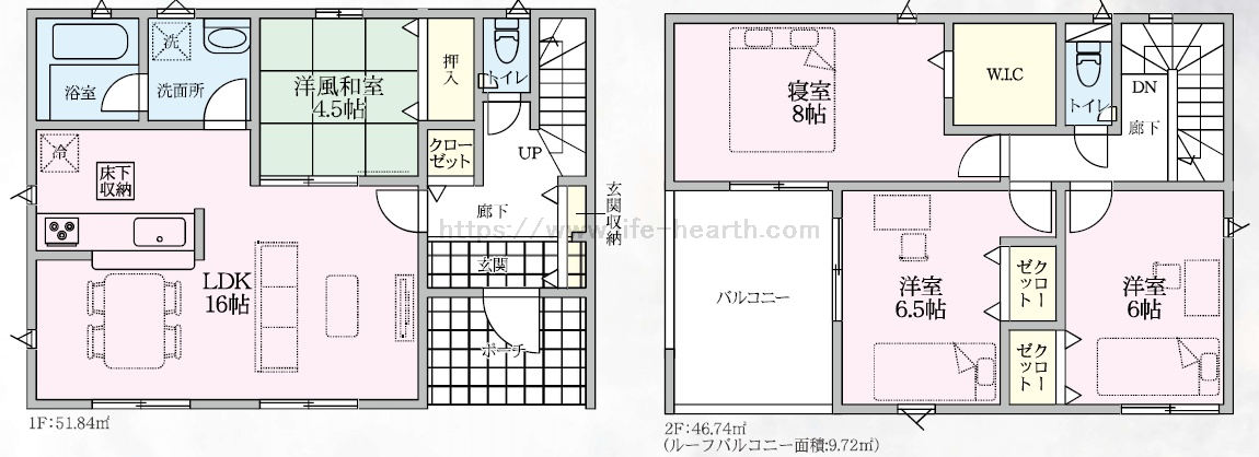 | 土地面積 | 152.74m2 〜 152.76m2 | 建物面積 | 97.59m2 〜 98.82m2 |