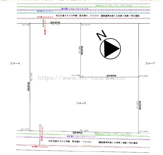 本庄市 土地面積:255.09平米 ( 77.16坪 )  本庄市 土地面積:736.66平米 ( 222.83坪 )