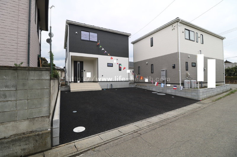 特色 | プロパンガス、公営水道、、雨水(浸透式)、合併浄化槽、駐車場3台以上可、対面キッチン、ユニットバス(換気暖房乾燥機)、シャワートイレ、シャワードレッサー、人感センサー付き玄関灯、TVモニター付きインターホン、防犯カメラ、全居室ペアガラス、フラット35S金利Aプラン、建築確認番号/第25UDI1W建01065号 |