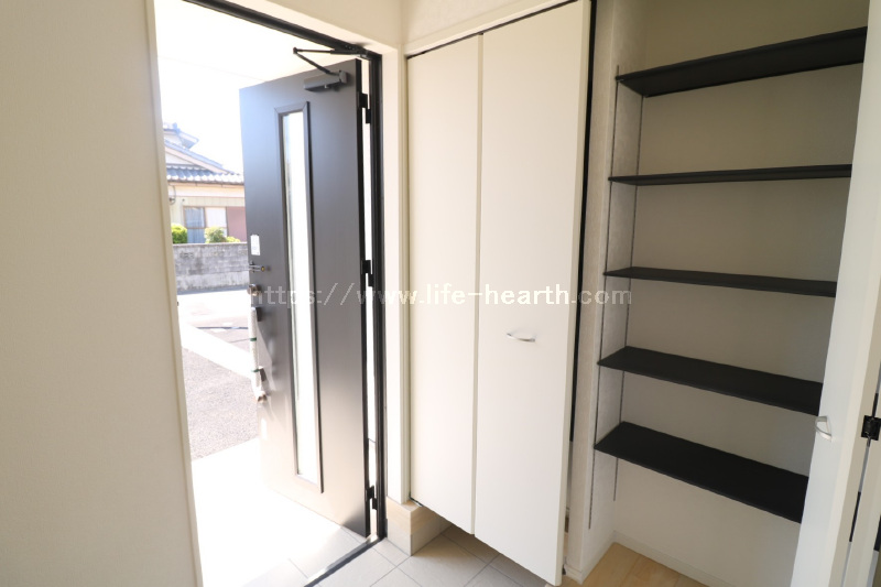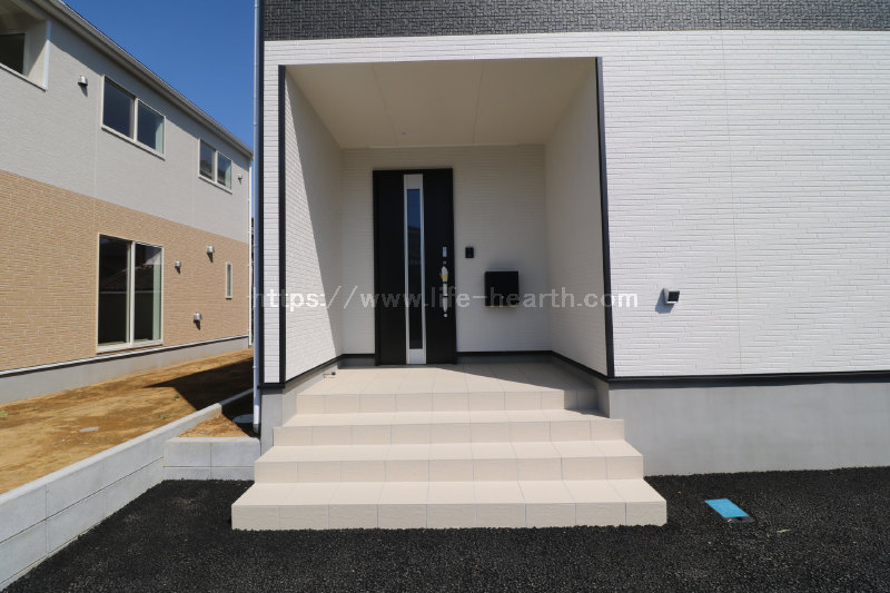 特色 | 公営水道、公共本下水(汚水・雑排水)・浸透式(雨水)、プロパンガス、駐車場3台以上可、小学校近く(徒歩10分圏内)、ウォークインクローゼット・納戸、システムキッチン、ユニットバス(換気暖房乾燥機付き)、シャワートイレ、シャワードレッサー、人感センサー付き玄関灯、TVモニター付きインターホン、防犯カメラ、全居室ペアガラス、建築確認番号/第25UDI1W建01381号 |