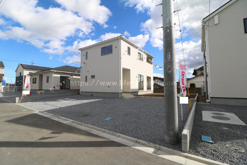 | 特色 | 東京電力、公営水道、浄化槽、個別プロパンガス、駐車場2台可、システムキッチン、ユニットバス(換気暖房乾燥機)、シャワートイレ、シャワードレッサー、人感センサー付き玄関灯、TVモニター付きインターホン、防犯カメラ、全居室ペアガラス、建築確認番号/第25UDI1W建03612号 |