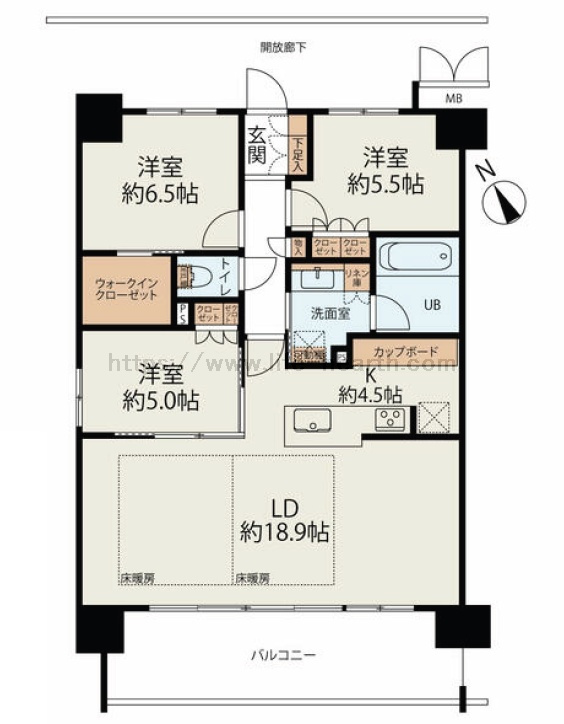 専有面積 | 85.05m2 ( 25.72坪 ) | 間取 | 3LDK |