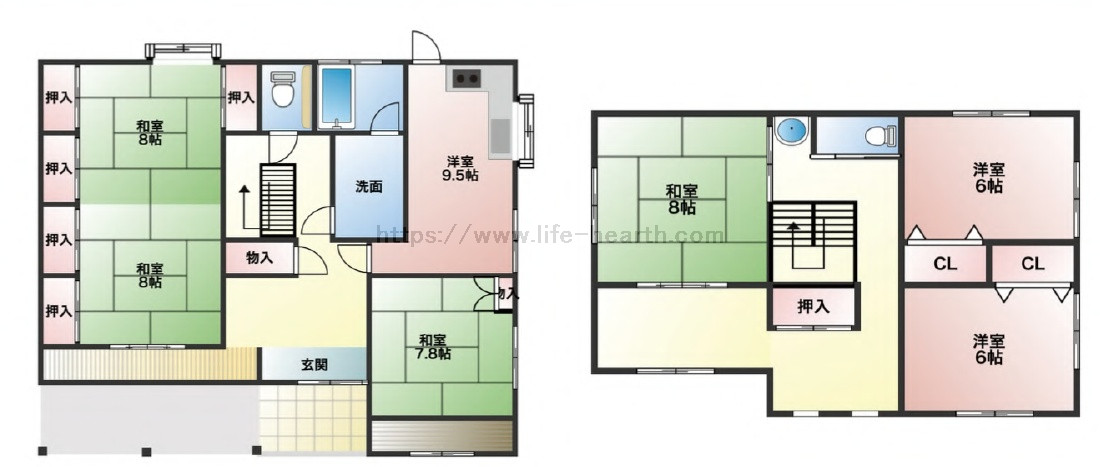 | 間取詳細 | 建物A:(1階)LDK29.5、(1階)和8、(2階)洋15、(2階)洋8.5、(2階)洋8.5 建物B:(1階)洋9.5、(1階)和7.8、(1階)和8、(1階)和8、(2階)和8、(2階)洋6、(2階)洋6 |