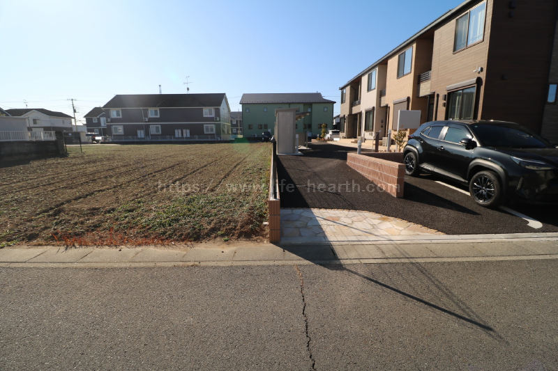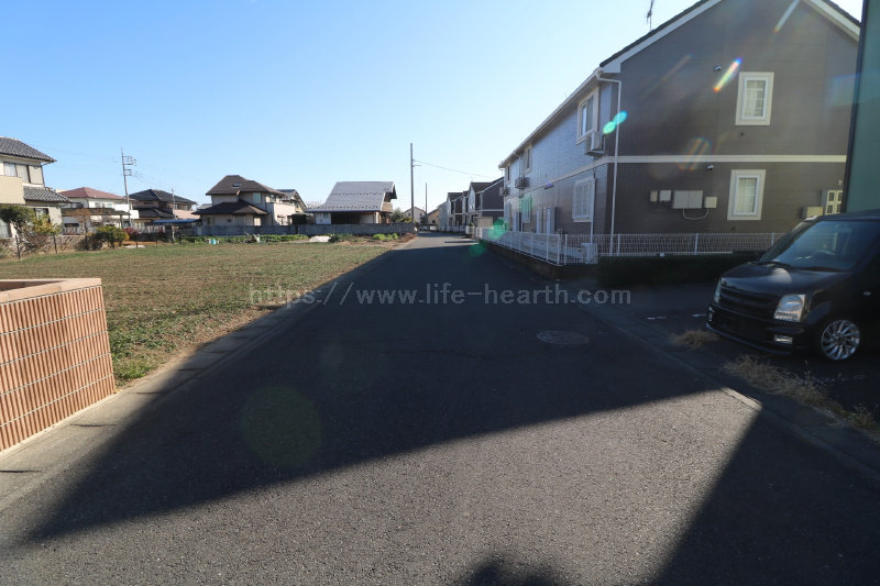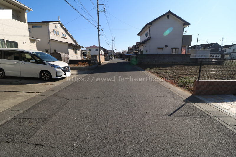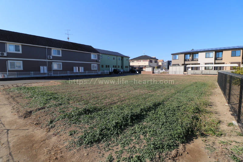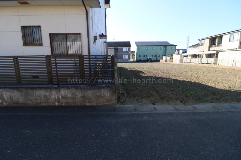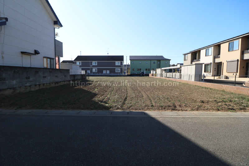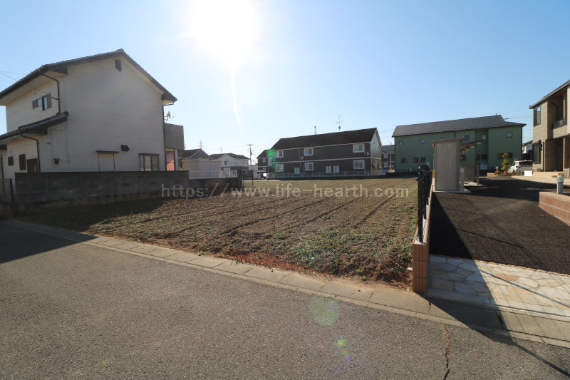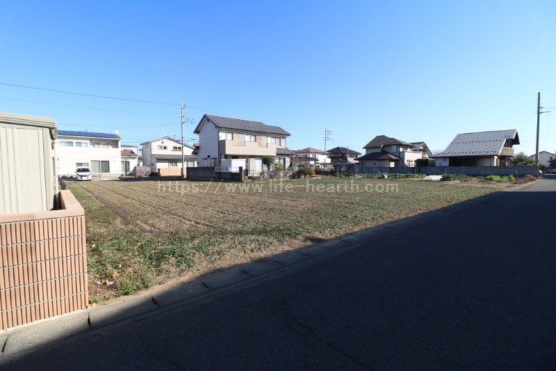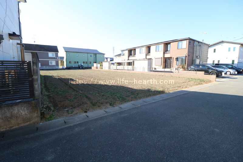 | 特色 | 建築条件なし、公営水道(北東側道路DIP75mm、南西側道路DIP150mm、引込み無し)、公共本下水(VU200mm、VU150mm管2ヶ所引込済み)、都市ガス(LP・PE75mm、引込み無し)、側溝、駅近物件(徒歩15分圏内)、両面道路、南道路 | ||||