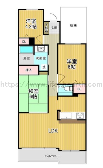 | 方向 | 南 | バルコニ面積 | 6.3m2 |