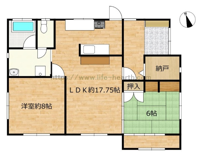 | 間取 | 2SLDK | 間取詳細 | LDK17.75、洋8、和6、納戸 |