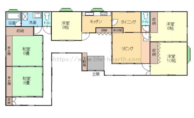 | 間取 | 5LDK | 間取詳細 | LDK、洋8、洋10、洋8、和8、和8 |
